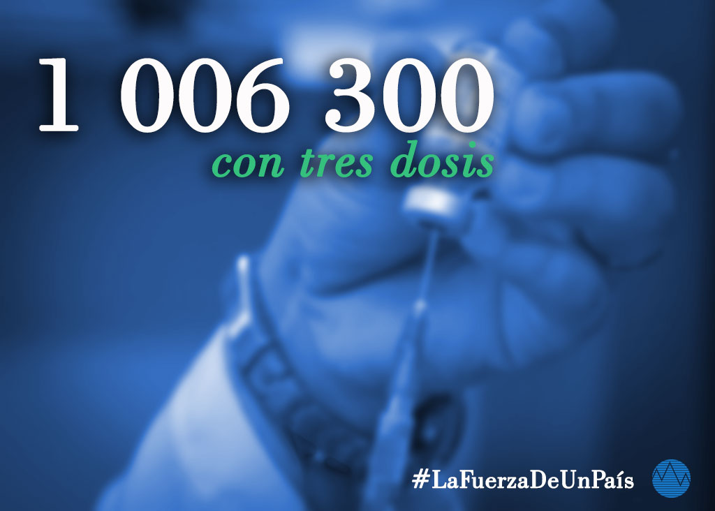 Un millón seis mil 300 cubanos han completado el esquema de vacunación con las tres dosis de los candidatos vacunales anti-COVID-19 Soberana 02 y Abdala, y seis mil 431 convalecientes recibieron Soberana Plus, tras aplicarse en el país un total de cinco millones 676 mil 321 dosis hasta el 27 de junio.